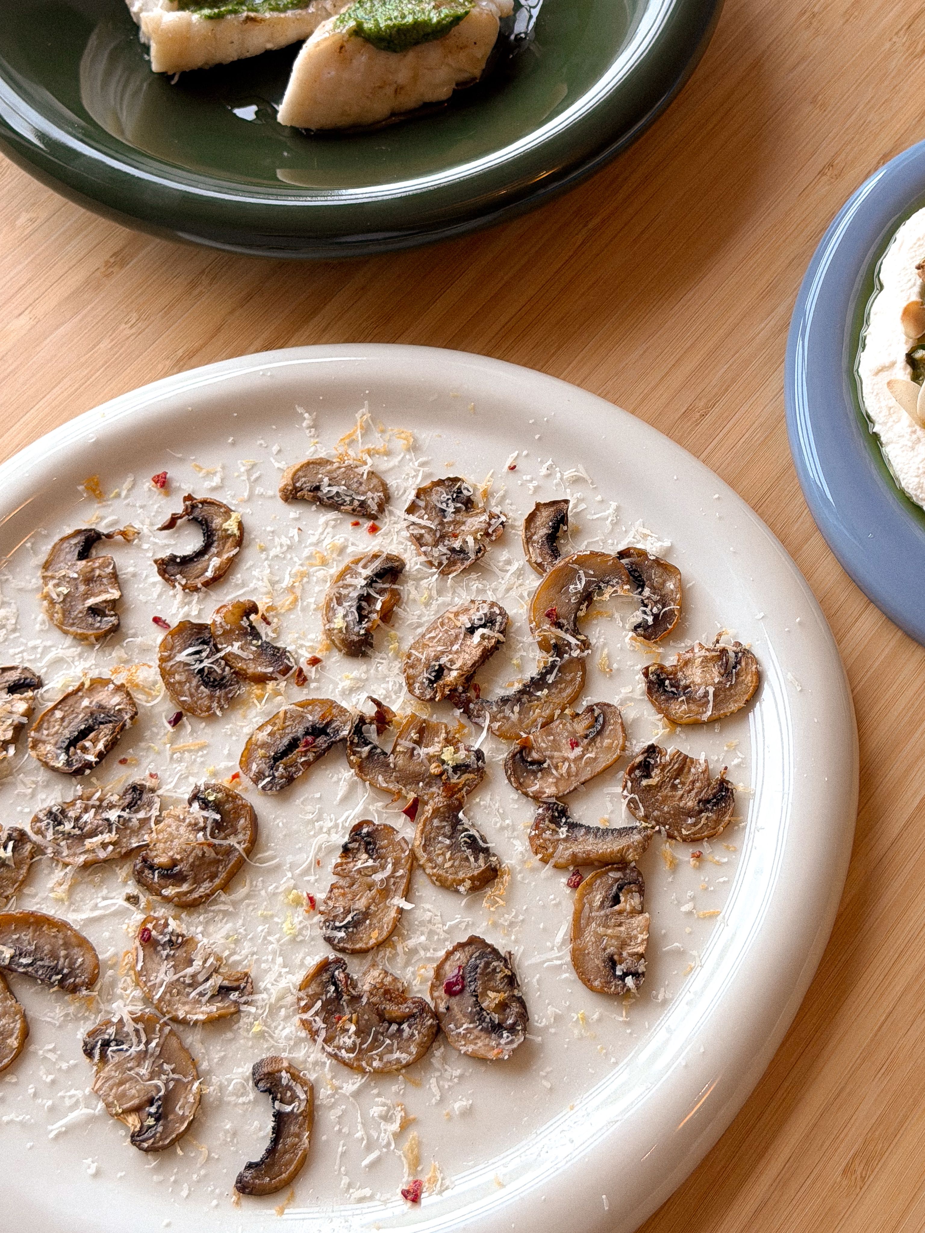 1. Slice your mushrooms and place in a bowl, add a bigggg drizzle of waxflower agrumato, a pinch of salt and toss.