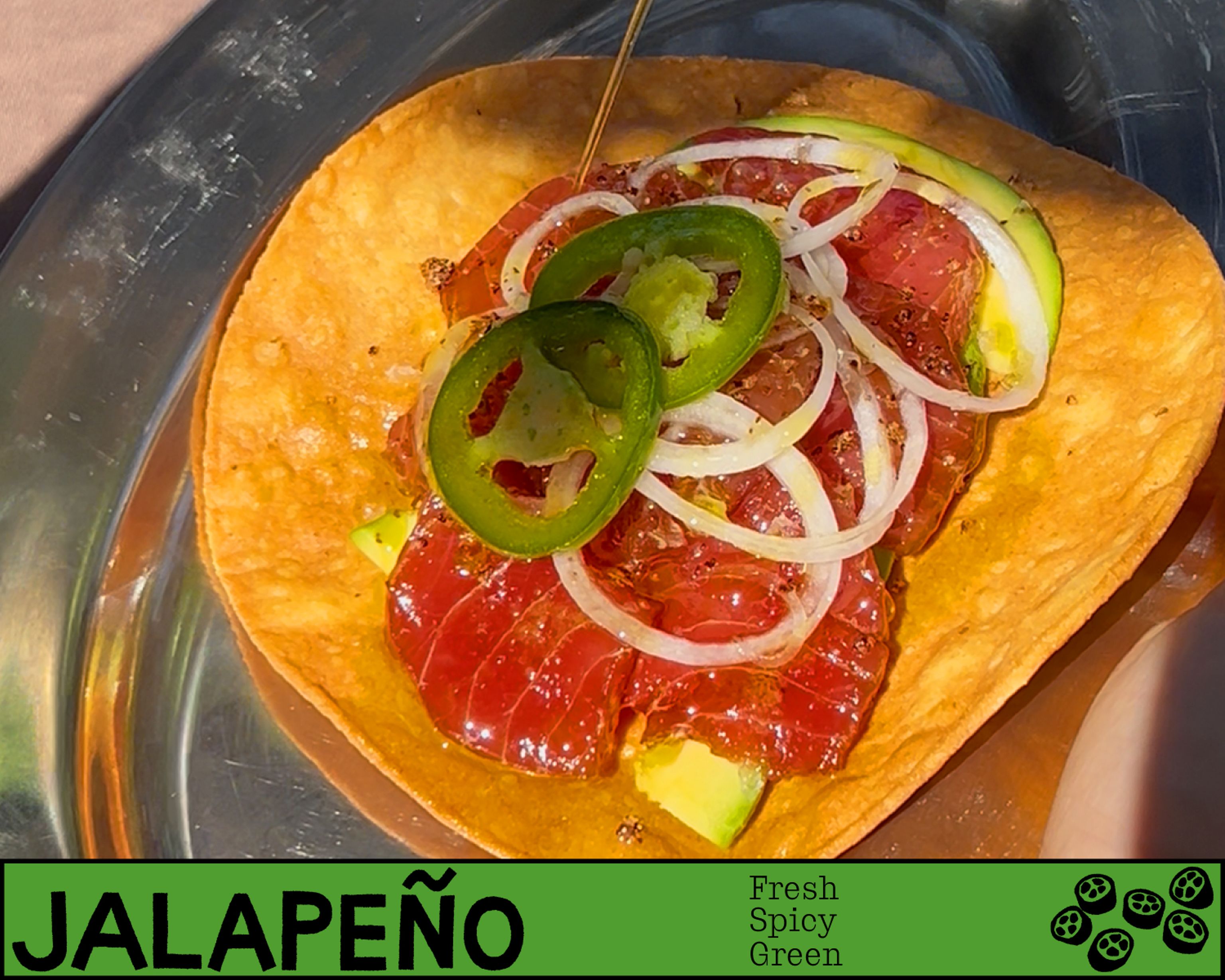tuna - Finally, garnish each tostada with jalapeno agrumato, serve, and