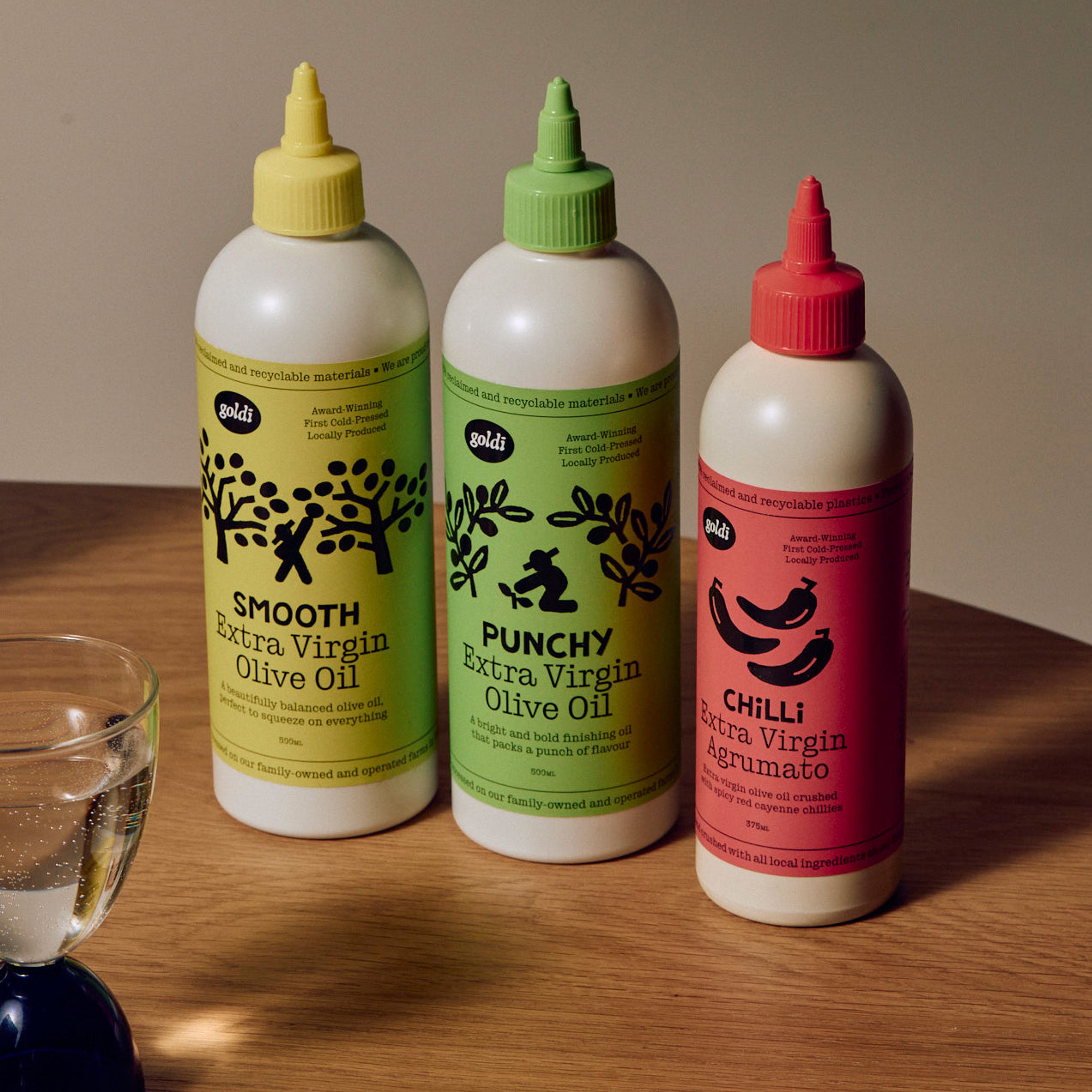 The Goldi Gift Box makes the perfect holiday-time present, featuring a 500ml bottle of Smooth Extra Virgin Olive Oil, a 500ml bottle of Punchy Extra Virgin Olive Oil, and a 375ml bottle of Chilli Agrumato. Beautifully packaged and ready to gift, it's the ideal present for any food lover or home chef this holiday season!